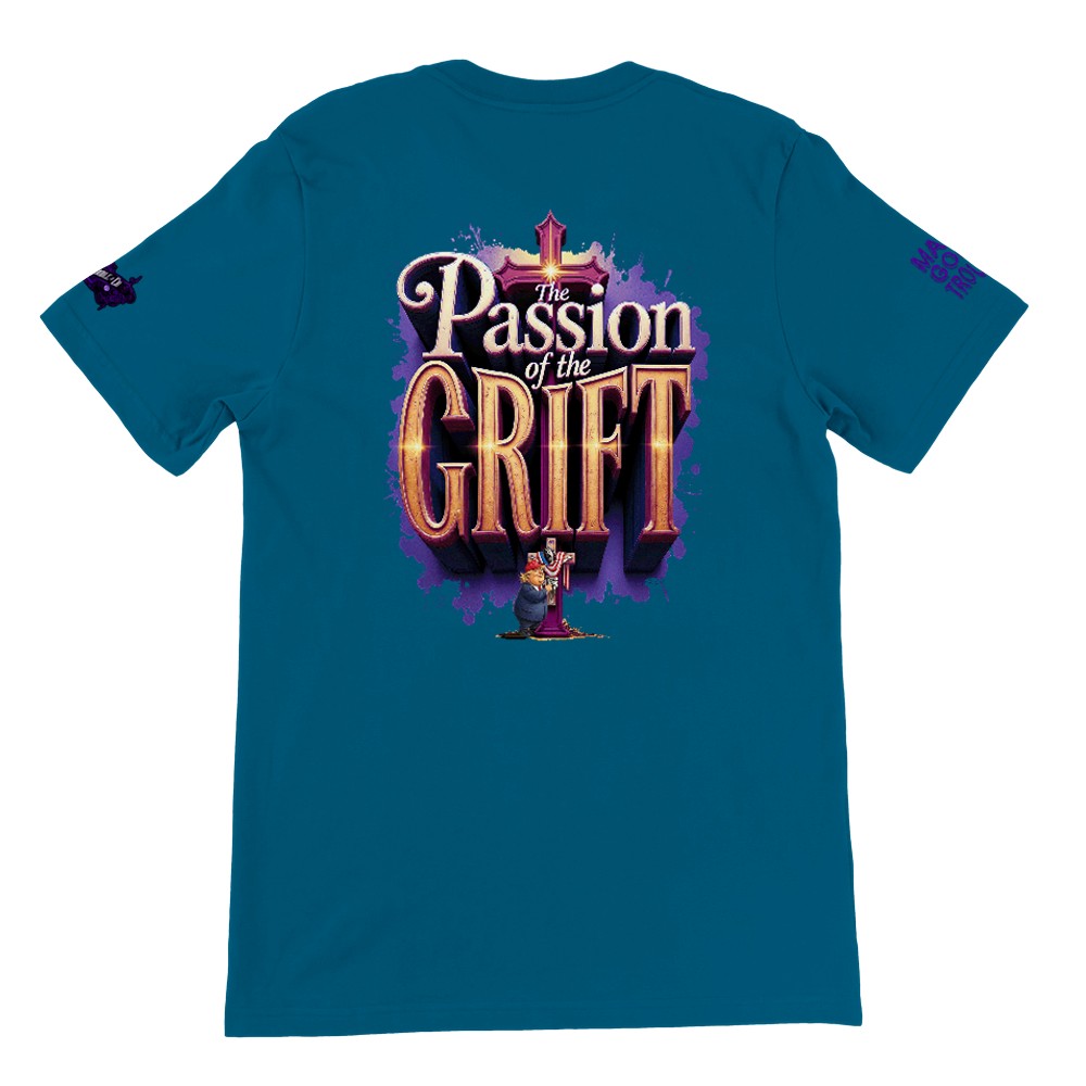 The Passion of the Grift examines what happens when belief is weaponized—when devotion is redirected toward power, profit, and personality. The imagery is deliberate. The scale is ceremonial. The critique is quiet but uncompromising.